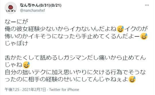 『イクのが怖い』っていうのが分かってればいいけど、知らなくて前戯とか止められたら『痛かったのかな』って思う。