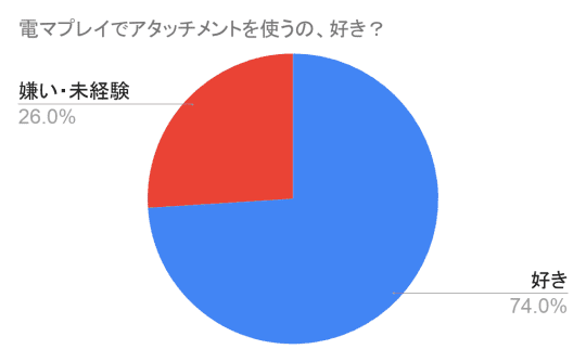 こちらの画像は、Twitterで集まってくれた20~40代の女性100人に、「電マプレイでアタッチメントを使うの、好き?」とアンケートを取ったときの結果をグラフに表したもの。