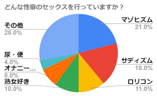 どんな性癖のセックスを行っているか?の質問に対して、フォロワーさんが一人一答ずつ回答してくれました。