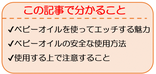 そこで今回は、ベビーオイルをセックスで使うことの魅力についてご覧ください!