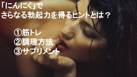 つまり、にんにくと筋トレって相性が抜群。にんにく摂取と筋トレを同時にする事によって、マッチョになるし、勃起力もアップします。