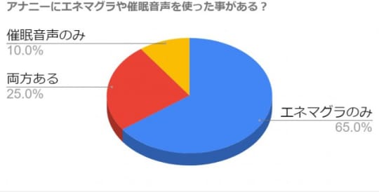 エネマグラはかなり使われていますが、催眠音声は半分より少ない事がわかります。両方使った方が、ドライオーガズムに達しやすいのにもったいないですね!