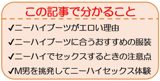 ロングブーツよりも更に長いニーハイブーツってエロいですよね♡そのニーハイブーツを履かせたまま、1度でいいから着衣セックスしてみたい!そんな願望を叶えるために、服装や注意点などをまとめました。いつでもエロいニーハイブーツ姿の女性には、知られざる努力があるのです。
