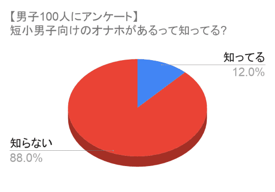 結果は認知度は低いと言うことですが、短小の男性の割合で言うともっと多くてよかった気がしますね。
