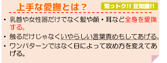 この2点はかなり重要なポイントです。要は、息が合う(タイミング・呼吸)か気持ちが良いかということです。