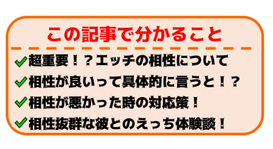 エッチの相性って気にしたことありますか?相性がいいって気持ちよさだけじゃないんです。相性が悪いと感じていても読む価値はあります。相性のいいエッチから改善できるエッチまで幅広く徹底解説!もしエッチで悩んでいることがあればきっと役に立てるはずです♪