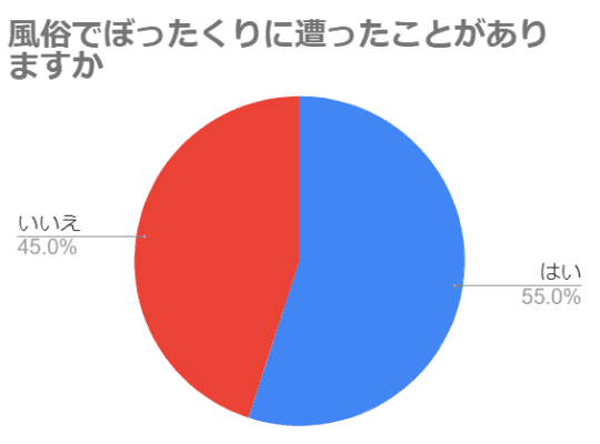 今回は新橋にいるサラリーマン100人を対象に「風俗でぼったくりに遭ったことがありますか」とアンケートを取ってみました。結果は上記のグラフの通りです。