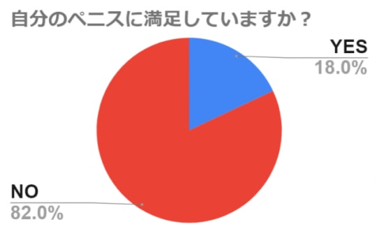 グラフを見ると、8割越えの男性が自分のチンコに何かしらの不満を持っていることがわかります。どんな不満かというと、