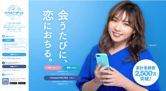 20年前に創立されたハッピーメール、私も10年前から使っています。年々登録者数も増えてきて、今では登録者数2,500万人です。