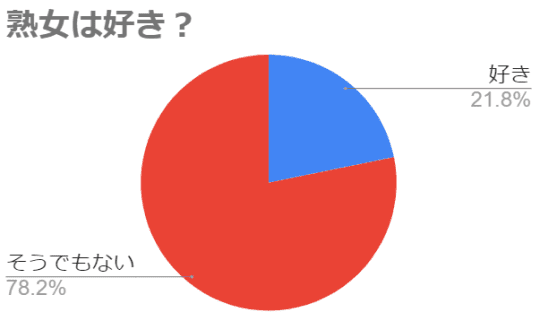 アンケートの結果、約2割の男性が熟女好きと答えました。10人に2人が熟女好きといったところでしょうか。