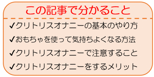 ここからは、誰がヤッても絶対に気持ちがいいクリトリスオナニーの方法を詳しく紹介していきます。