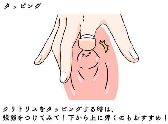 クリトリスを皮の上からこすったり、つまんでみたり、優しくタッピングしたり、指で震わせてみたり…。