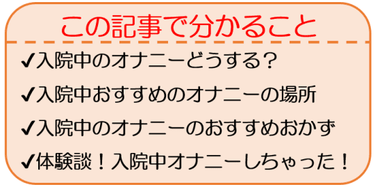 入院中にオナニーするためには、とにかく周囲の人の目からうまく隠れて一人になる空間を作ることです!