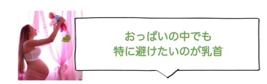 おっぱいの中でも特に避けたいのが乳首ですね。おっぱいの中でも強い性感帯であり、刺激を与えすぎると早産のリスクが高くなってしまうので十分に気をつけておきましょう。