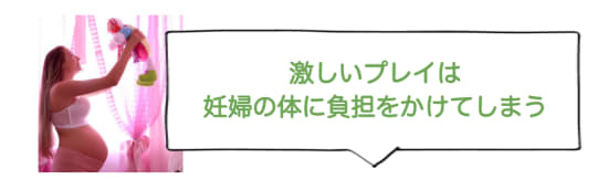 やはり妊娠中なので、激しいプレイはNGです。激しいプレイは妊婦の体に負担をかけてしまいますし、最悪の場合赤ちゃんにまで影響がいってしまう可能性があります。