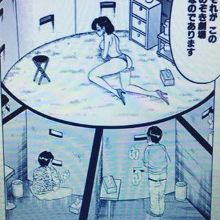 丸い部屋の周りには、小窓付きの小部屋が沢山あり、その小部屋から部屋の中の女性を覗きつつ、ひたすらシコる、と言った風俗です。
