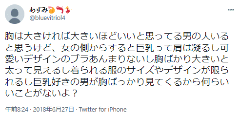 では、巨乳の女性が困っていることは、いったい何なのでしょうか?