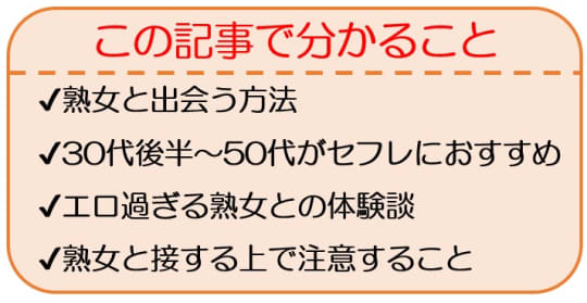 他にも色々あると思いますが、私の経験とここ1年以内に知り合った23人の熟女セフレ談です。参考程度にお願いします。