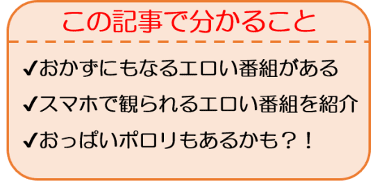 そんなあなたに、ゴールデンタイムでは絶対見られないような、スマホやパソコンでも気軽に見れるエロい番組をご紹介していきます!