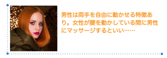 角度や向きによって性感帯を刺激されてオーガズムを感じたり、盛り上がったり、愛情が深まるなどそれぞれ特徴があります。