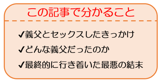 もし、いま義父と肉体関係を持っている方は、取り返しがつかなくなる前に、早く関係を終わらせてくださいね。