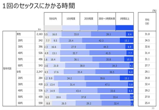 つまり各世代が、どれぐらい丁寧にセックスしてるかってこと。