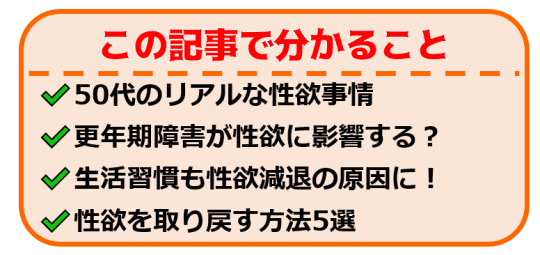 50代女性の性欲の欠如は精神的なこと+カラダのコンディションが原因です。