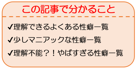 今回は「もしあなたならどこまで受け入れられる?」普通から一般を抜けた性癖まで解説します。
