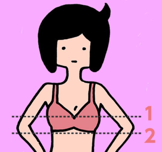 イラスト②の位置が【アンダーバスト】オッパイのすぐ下の胴体自体のサイズです。