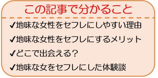地味な女はセフレにしやすいので、これからセフレをつくりたい人はマジで狙ってみてください!