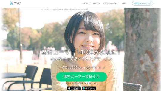 YYCとは、2000年からのサービス開始以来、累計会員数1400万人を超える日本最大級のマッチングサイトです!