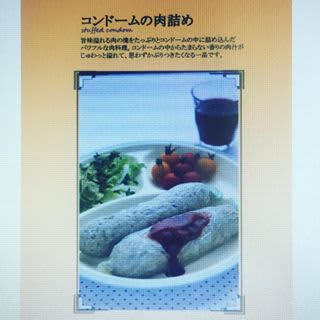 コンドームを調理器具に、様々なアイデア料理に挑戦するという、コンドームさえ調理器具に使っていなければ至って普通の料理本でした。