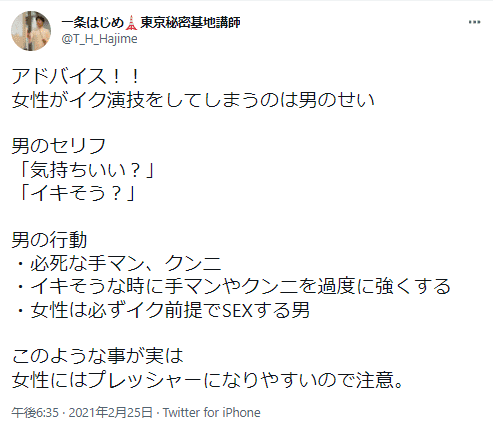 AVやアニメ、マンガなどの情報からイクってこういう感じかな?というイメージで演技をしてしまうみたいですね。