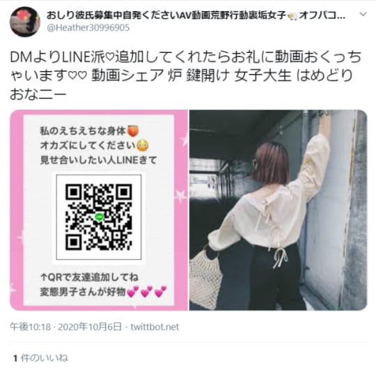 出会い系サイトの勧誘をしてくる女性は、誰にでも見られるツイート欄にLINEのIDを記載していたり、QRコードを載せていたりします。