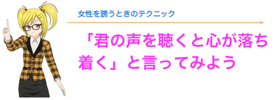 また、褒め方としては「君の声を聴くと心が落ち着く」などと、メンタルケアの要素も伝えてあげると「癒し系女性」として褒めてあげられるので、効果てきめんです。