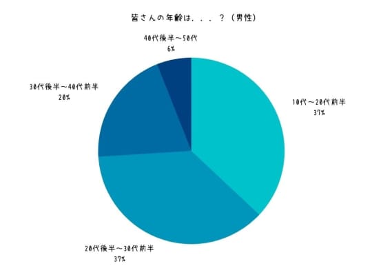 男性のオナニーを行う年齢の割合を見てみると、10代~20代前半と20代後半~30代前半の項目の割合が同率でした!