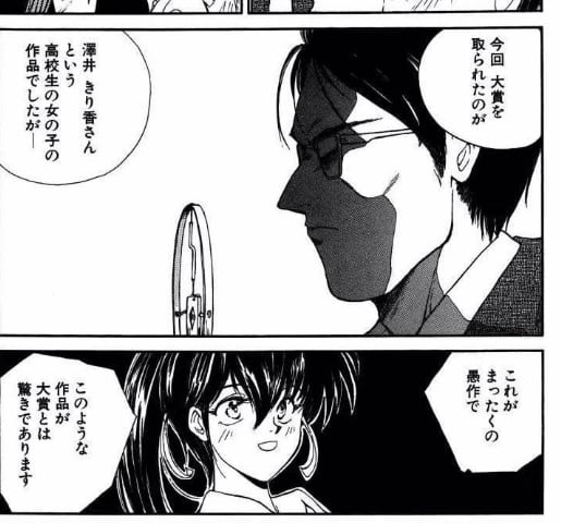 そして"レディースコミック"で新人賞を受賞することがで授賞式に参加するが、そこで編集の人がマイクできり香の漫画は"まったくの愚作”や”作品が大賞なのが驚き"などと次々罵倒していくのです。