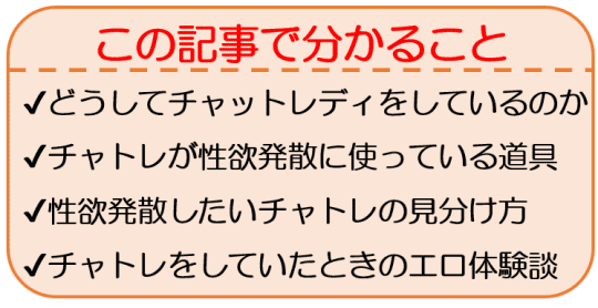 チャットレディはお金を稼ぎに来ているだけじゃないんです!性欲を発散するために一緒にオナニーをする男性を探していたりもします。彼女たちが、エロチャットにやってくる事情や人気のあるおもちゃなどを現役チャットレディが解説します!
