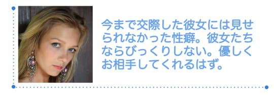 今まで付き合った彼女には見せられなかった性癖も、彼女たちならびっくりせず優しくお相手してくれますよ。