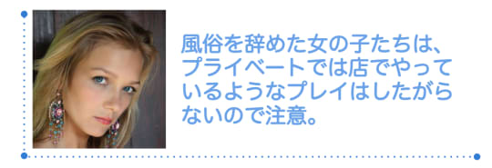 風俗を辞めた女の子たちは、出来ればプライベートでは店でやっているようなプレイはあまりしたがりません。