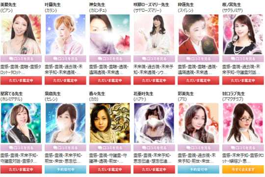 風水・ヒーリング・霊視など様々な分野で有名な一流の占い師たちがそろっており、その登録占い師数は現在190名!