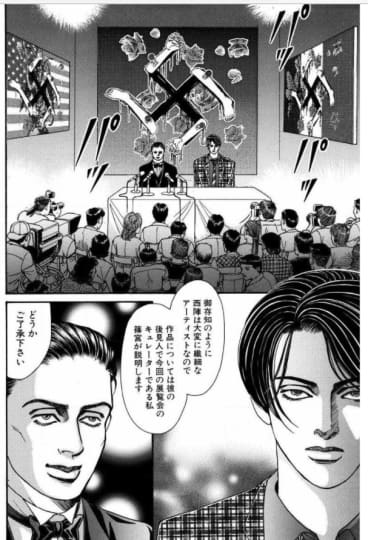 直人は記者の額に"牝豚"と書き服を脱がすとそこには"ボイスレコーダー"があり直人は"けつの穴だけじゃ足りないのか"と言い、展示会の十字架の所へ連れて行きセックスをします。