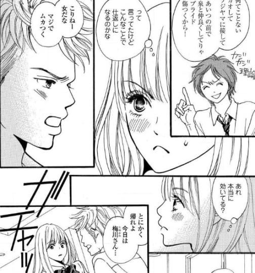 相談内容を聞いた泉は"ただの幼馴染だから付き合ってると誤解されたくない"と言い、亜美果は泉は芽衣子の事は好きな事を確信をして嫌がらせすることを決意します。
