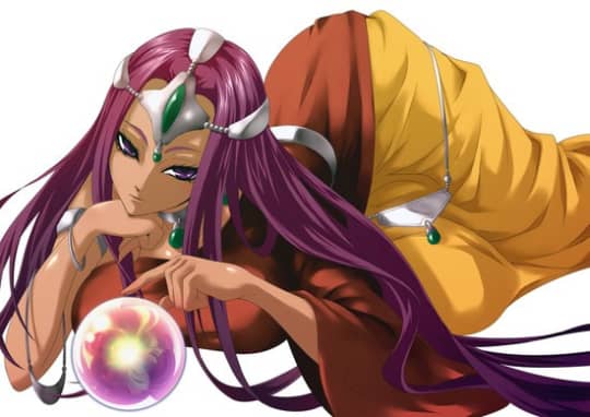 占い師の服装に隠された肌ですが、フローラ同様に一部分だけザックリ露出しているのが憎いです。