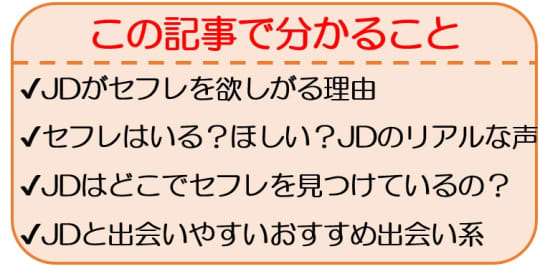 そんな中で都合よく付き合えるセフレは、相手を気遣わずに済んで活動時間が不規則でも会いやすいのでJDにとっては本当に「都合のいい存在」となっている訳です。