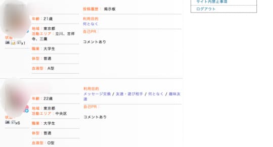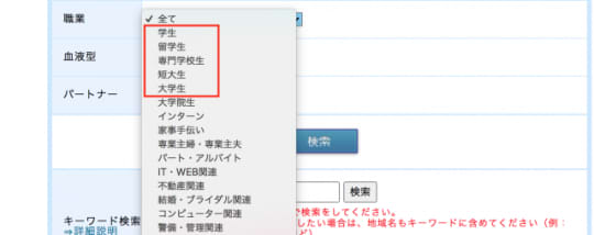 プロフ検索で、年齢を18~22歳で設定し、職業欄で大学生を選択します。