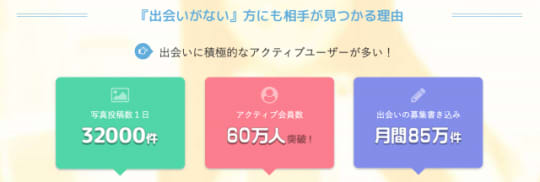 会員数2,000万人越えのモンスターアプリなので、都心部でなくても近場で出会えるのも魅力の一つ。