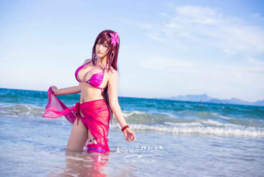 サークル名は夏鸽鸽的小窝~さんで、レイヤーの夏鸽鸽さんがお届けする「スカサハ水着」です。