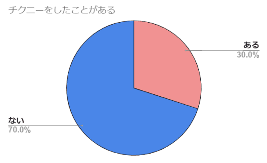 Happy Travelでは、10代~30代の80人男女にチクニーをしたことがあるかというアンケートを取った結果以下のようになりました。