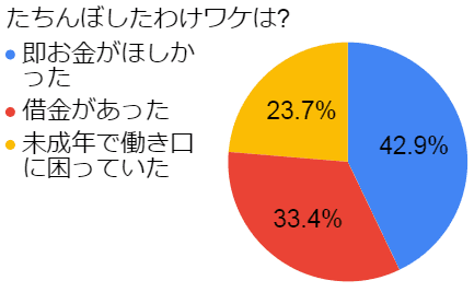 何を理由にたちんぼをするのか、風俗経験のある女性55人にSNSを使って独自アンケートをしました。